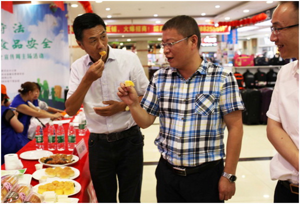 7月13日,湖南萬利隆食品有限公司與雨湖區食藥監分局、雨湖區衛計局、雨湖區教育局等多部門聯合開展了2017雨湖區食品安全宣傳周主場活動,湘潭市雨湖區人民政府副區長章光明、市食品藥品監督管理局黨組副書記宋樹平等領導在活動現場檢測并試吃萬利隆新上市產品。